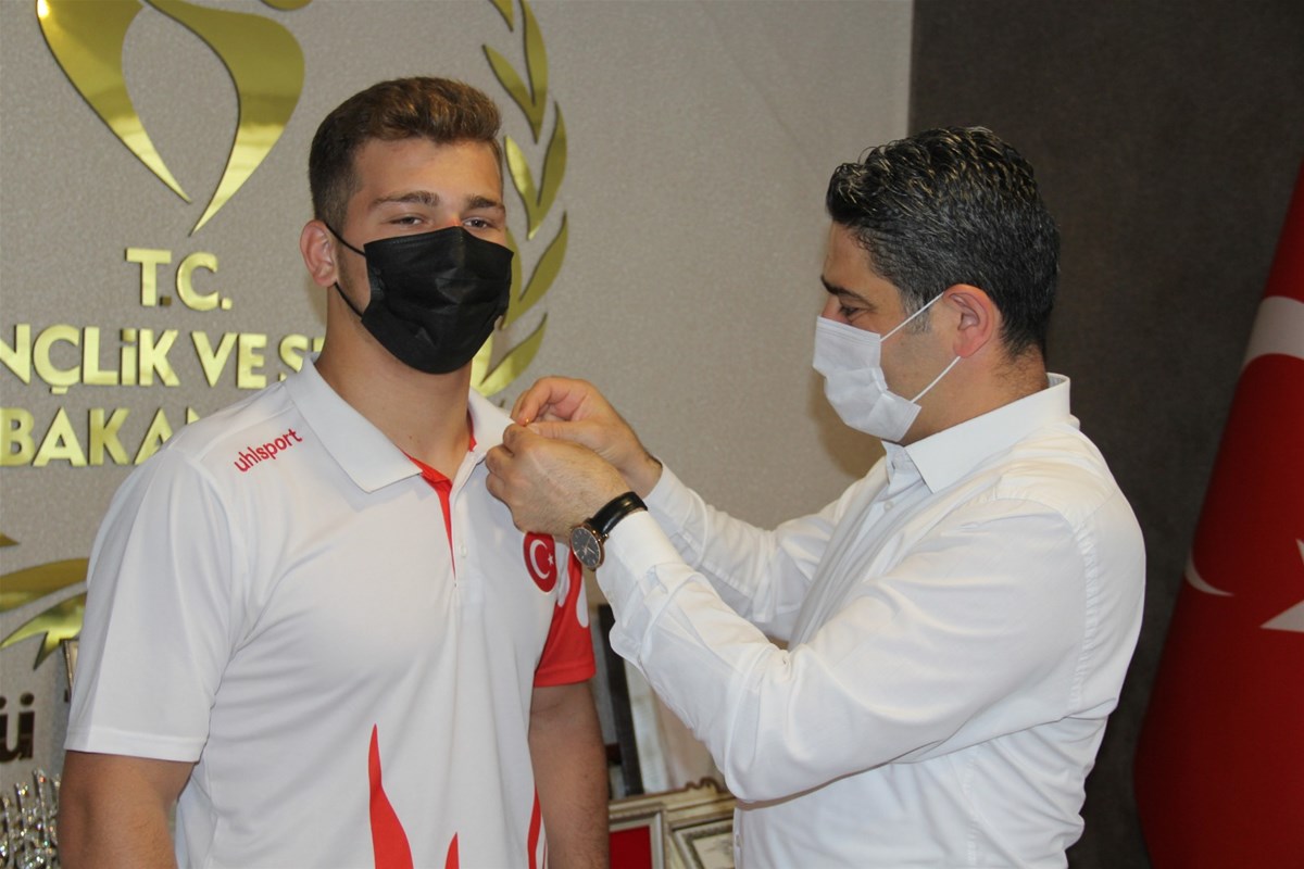 Başarılı Güreşçimiz ve Antrenörleri Şampiyona dönüşü Gençlik ve Spor İl Müdürümüz Cemil Boz’u makamında ziyaret ettiler. İl Müdürümüz elde edilen başarıdan duyduğu memnuniyeti ifade ederek Sporcumuzu ve Antrenörlerinin tebrik ettiler. Ayrıca ziyaret sonunda Büyükçıngıl’a altın hediye etti. Ziyaret sonunda hatıra fotoğrafı çektirildi.