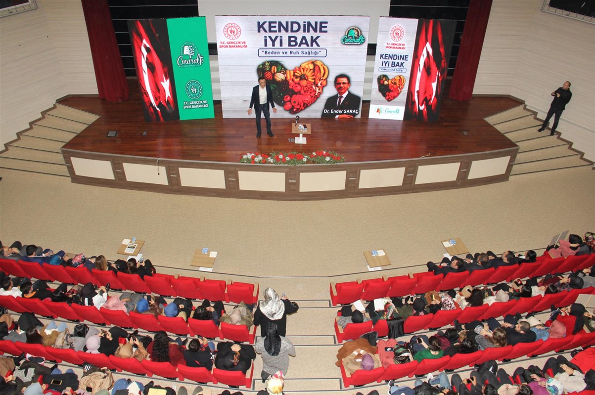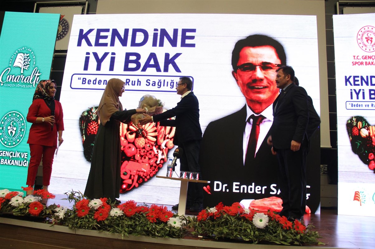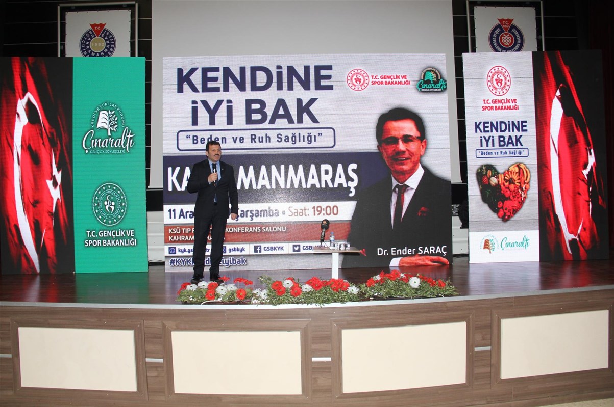 Gençlik ve Spor Bakanlığı, Kredi ve Yurtlar Genel Müdürlüğü Çınar Altı Gençlik Söyleşileri kapsamında 81 ile organize edilen ve Kahramanmaraş Gençlik ve Spor İl Müdürlüğü olarak ev sahipliği yaptığımız Dr. Ender Saraç Kendine İyi Bak “Beden ve Ruh Sağlığı” adlı söyleşi programı 11 Aralık 2019 tarihinde Kahramanmaraş Sütçü İmam Üniversitesi Tıp Fakültesi Konferans Salonunda düzenlendi.